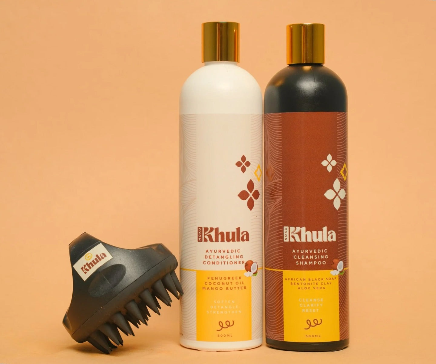 African Black Soap Cleansing Shampoo + Ayurvedic Detangling Conditioner + Nokukhula Scalp Massager